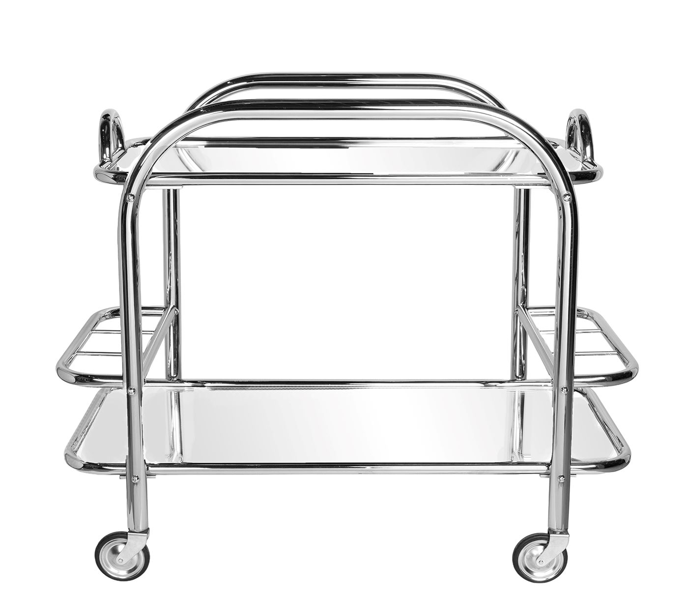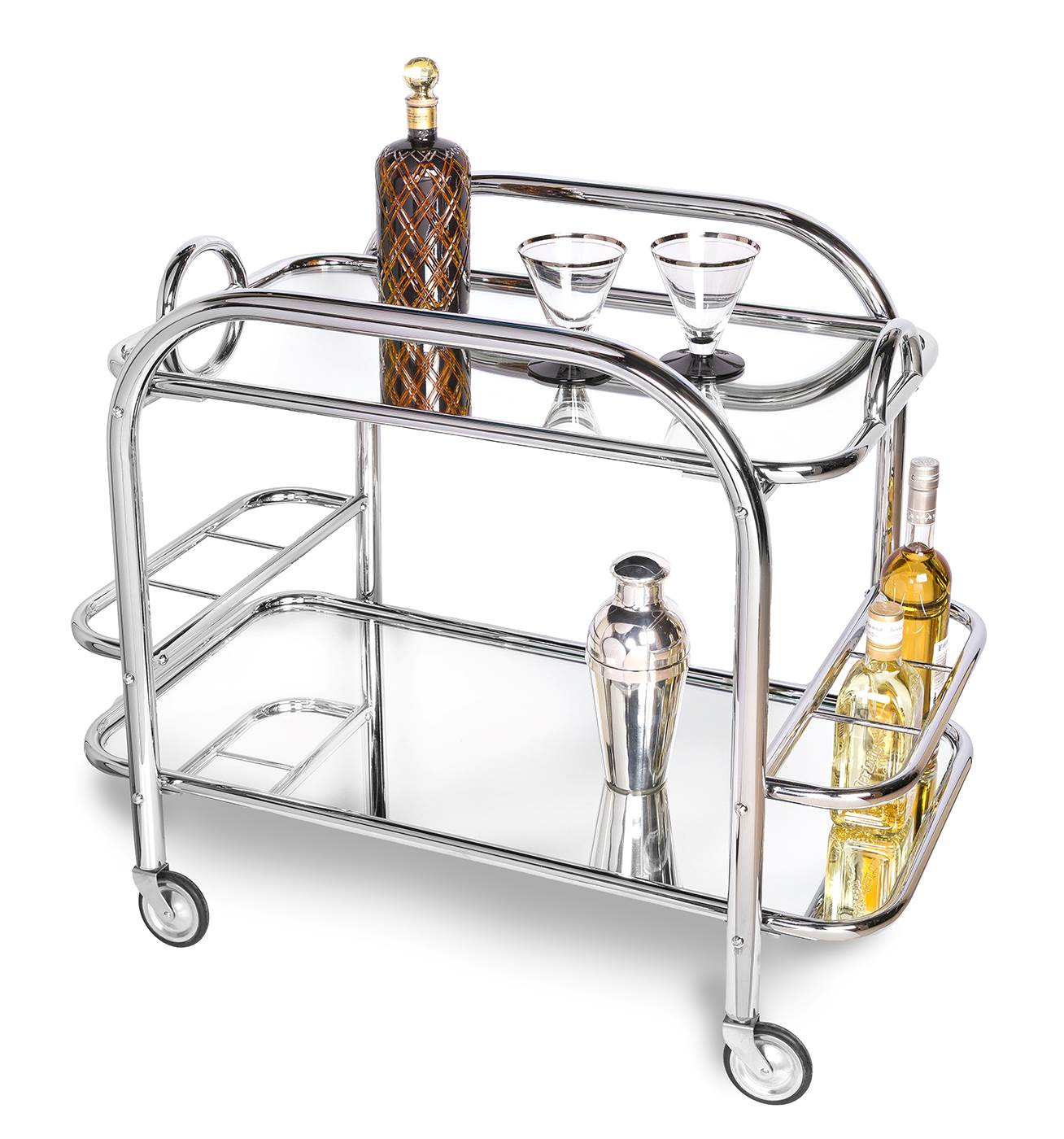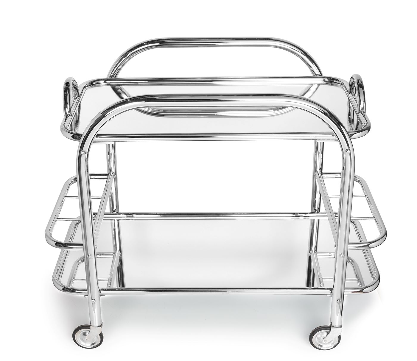 Barwagen mit abnehmbarem Tablett aus Spiegelglas, jeweils 2 Flaschenkörben auf jeder Seite. Das Objekt wurde auf höchstem Niveau restauriert.