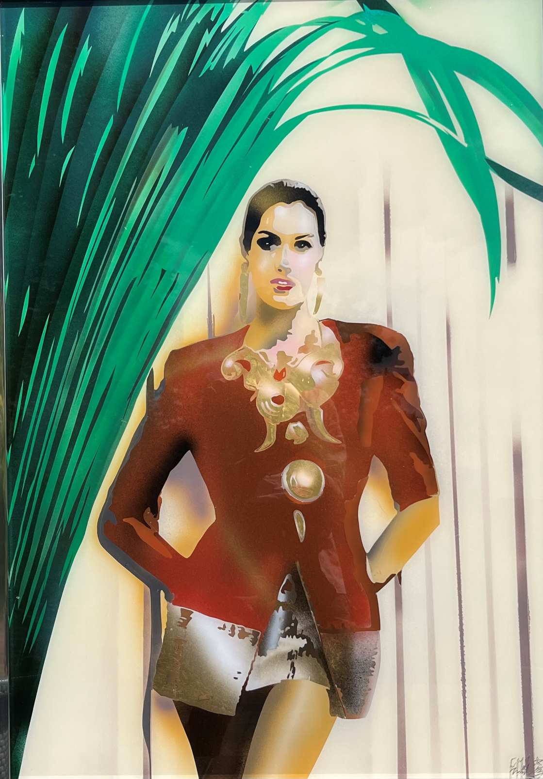 Hinterglasmalerei auf Acrylscheibe, ausgeführt in Airbrush-Technik mit