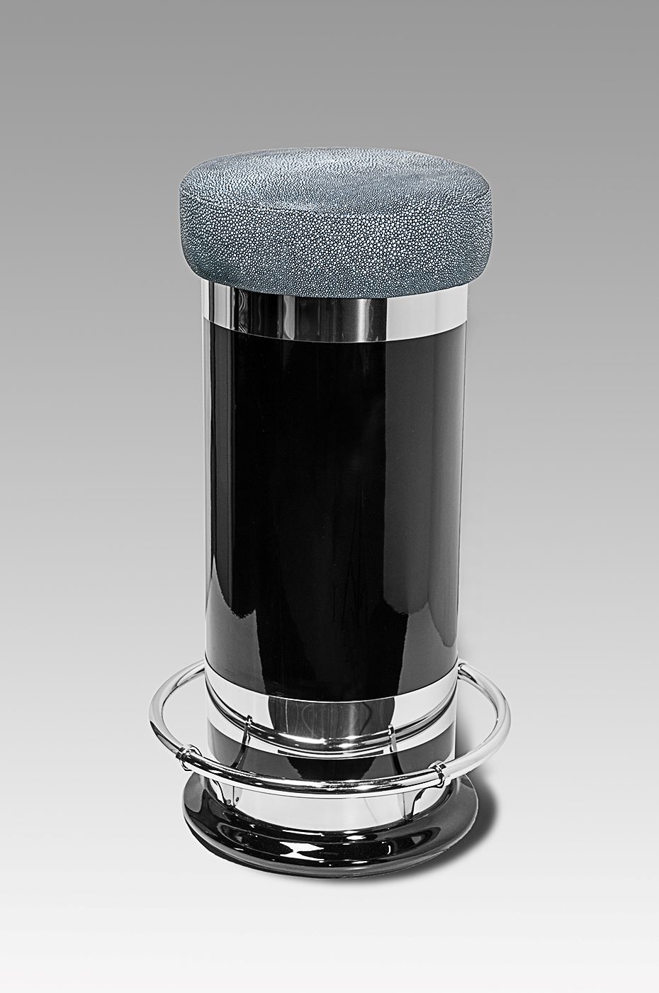 3 Barhocker – passend zur Bar Art Déco, Echt Lederpolster in Rochenhautanmutung.