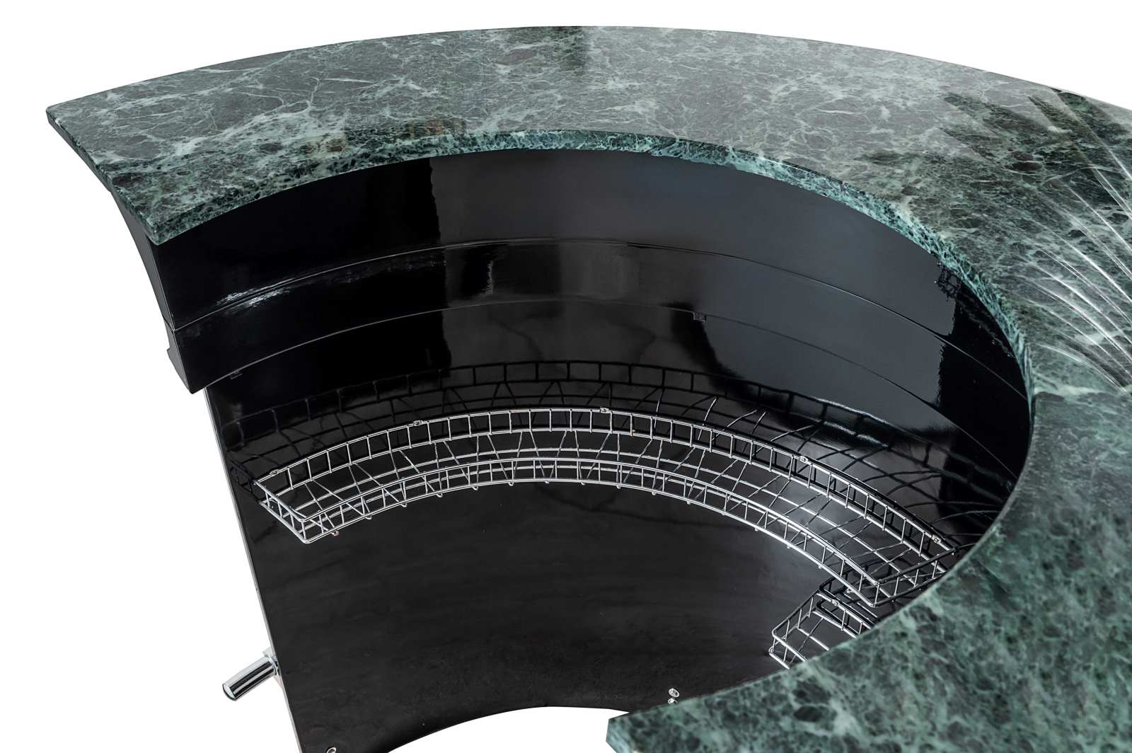 Die Bar hat aufwendige Metallapplikationen und Holzdekore.