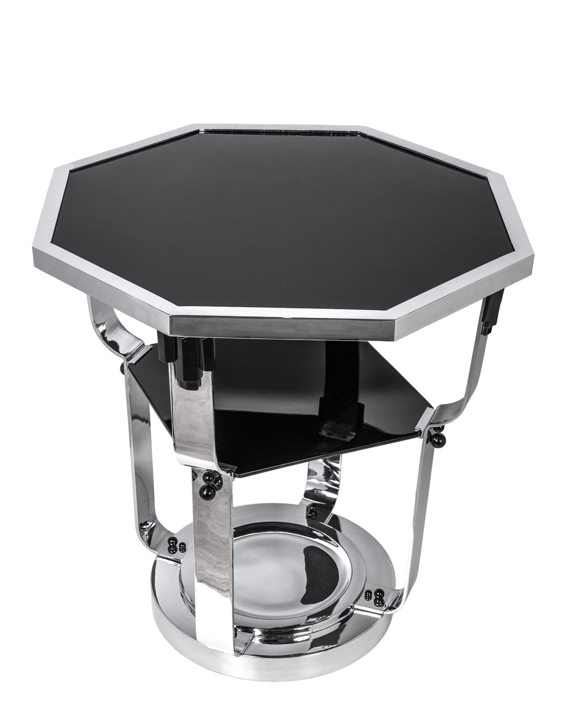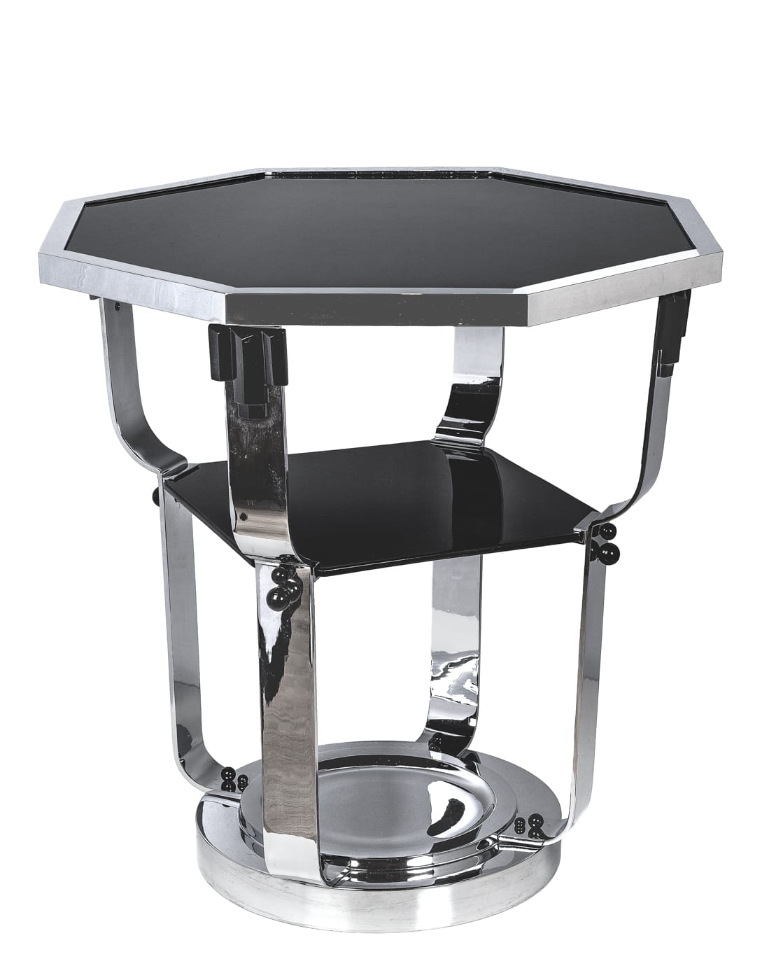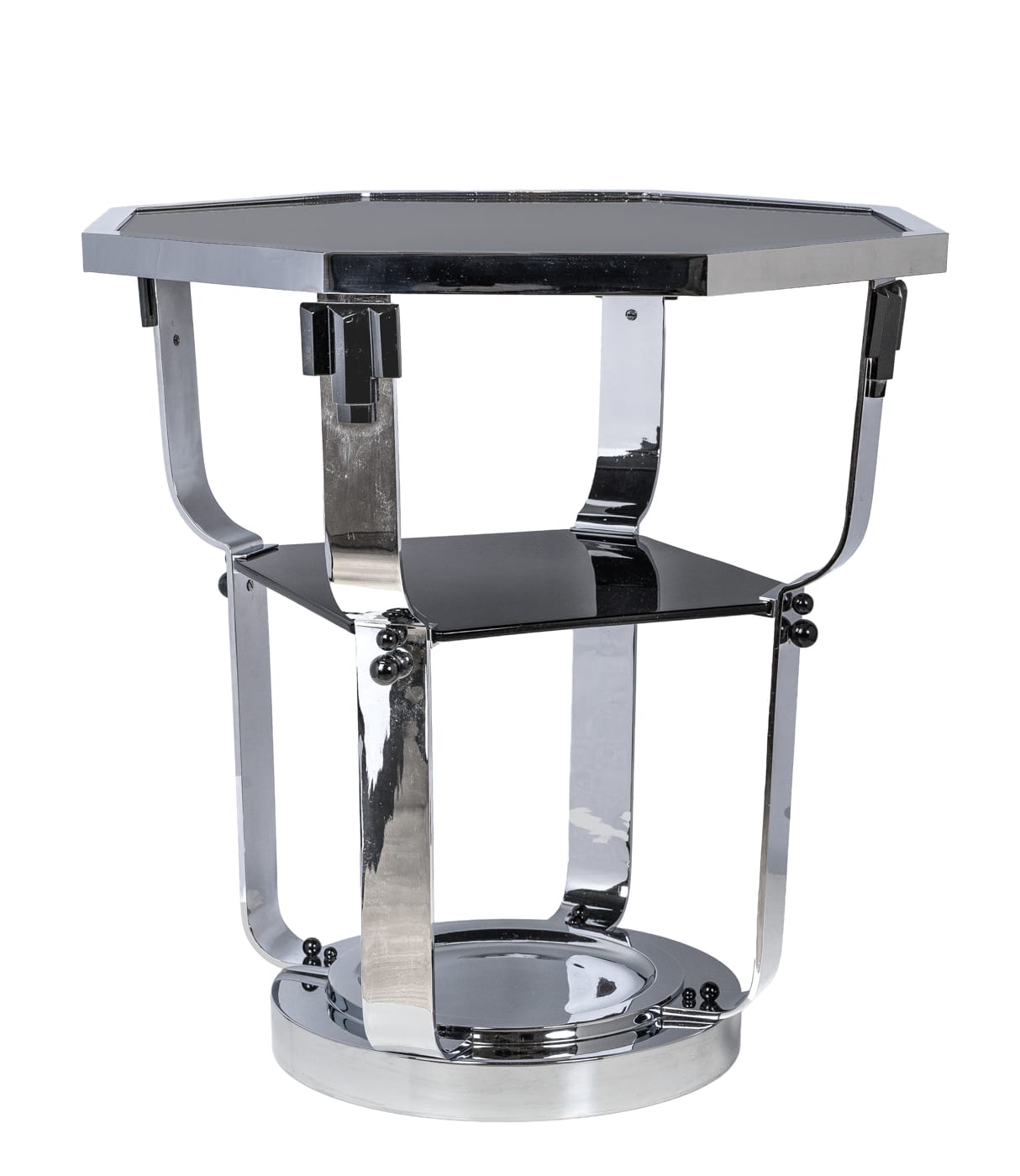 Messing und  Gestell Aluminium Edelhochglanz verchromt .Schwarzes Glas