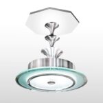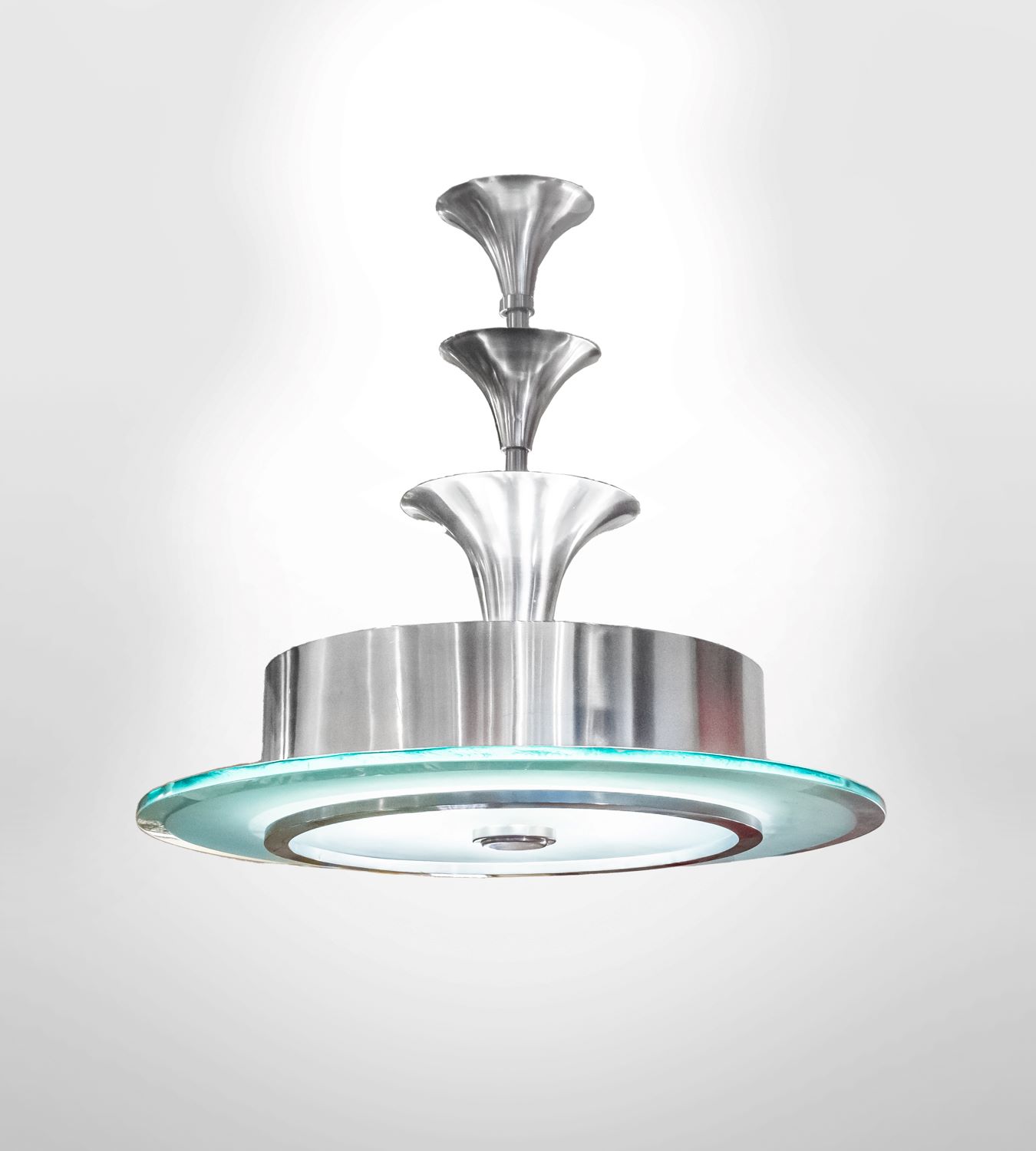 In der Lüsterstange sind drei sich verjüngende Elemente übereinander getreppt die für diese Zeit