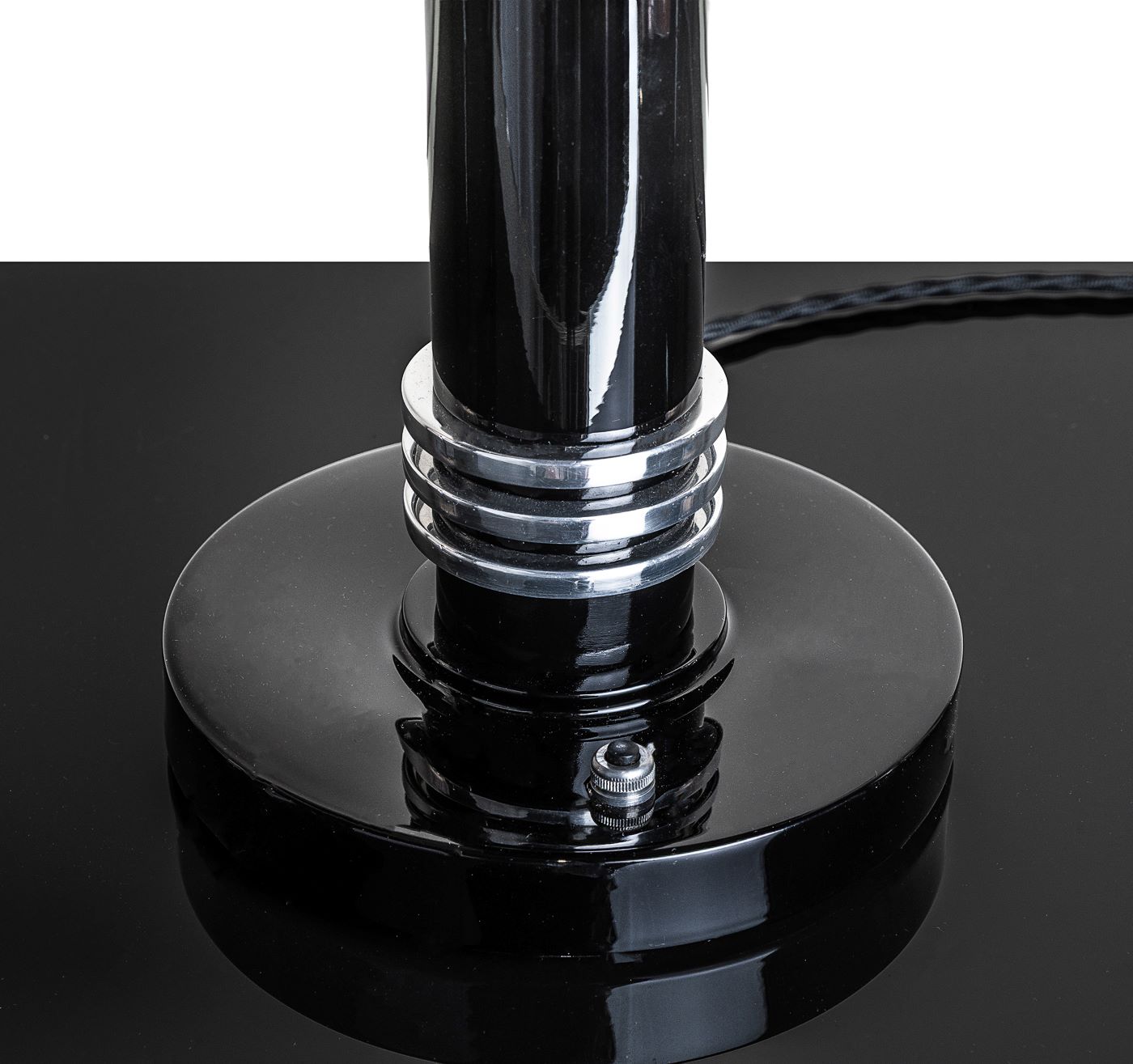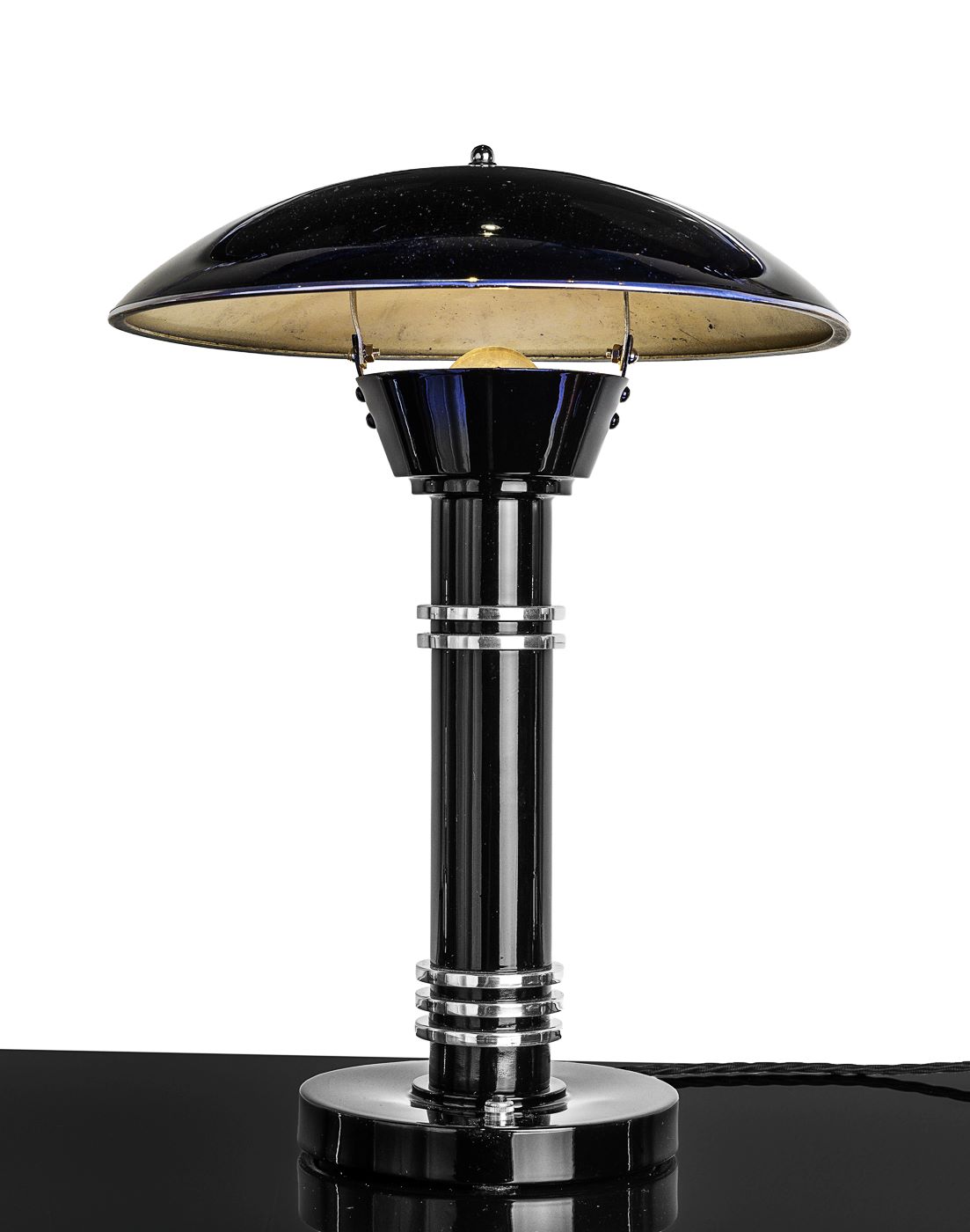 Material: Metall schwarz Hochglanz, Dekor aus Chrom original erhalten Schirm schwenkbar.